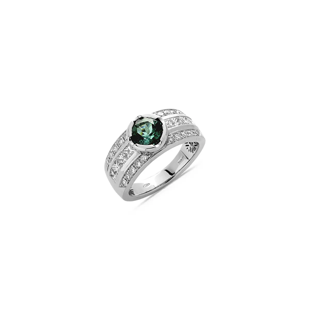 Bague Les Parisiennes Tourmaline de Namibie 1.15ct et Diamants 1.07ct en Or Blanc 750 mill.