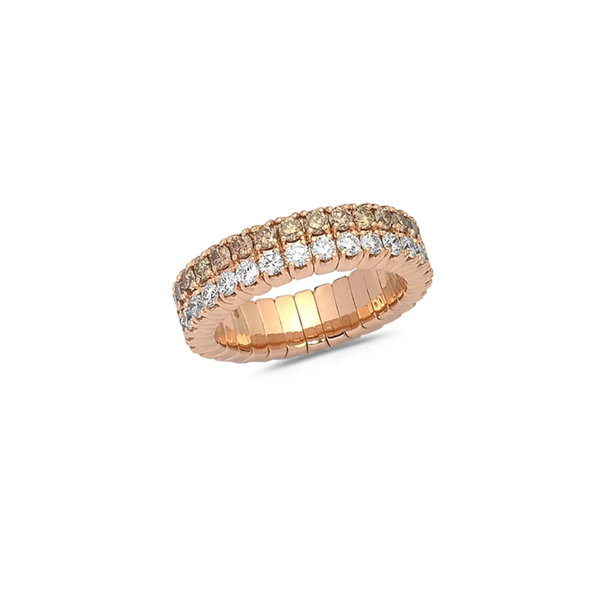 Alliance Extensible Demi-Tour Diamants Brillant et Diamants Bruns en Or Rose