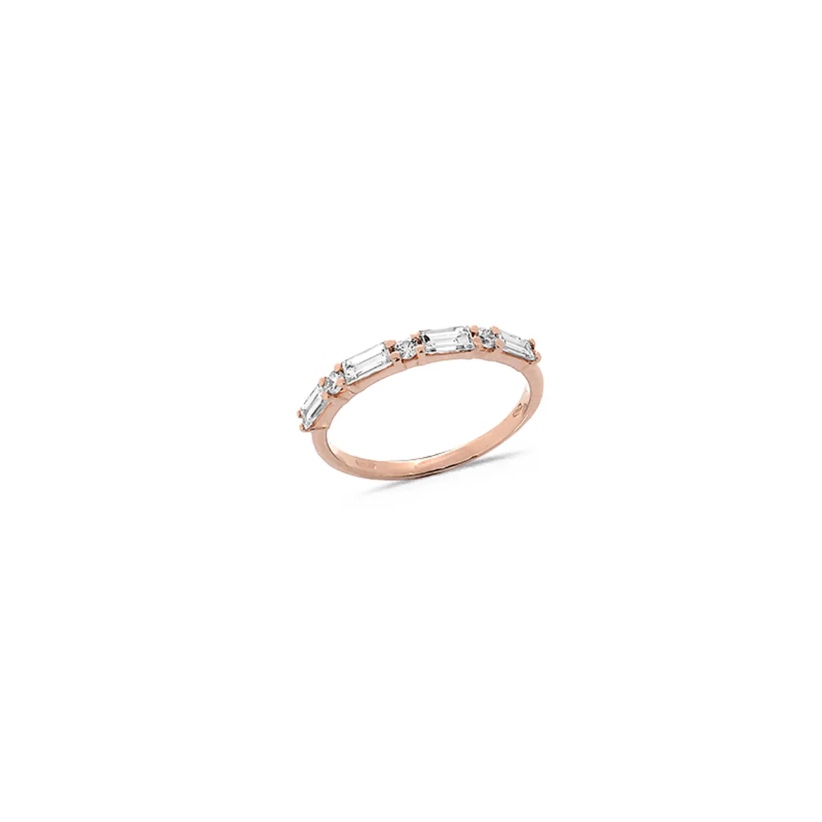 Alliance Demi-Tour Diamants Baguette  et Brillant  en Or Rose