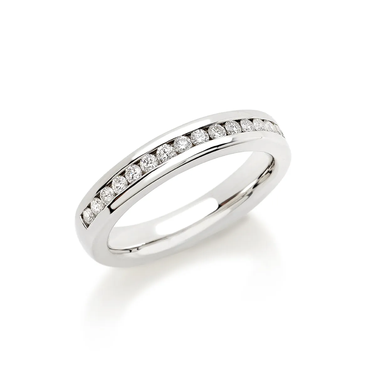 Alliance Demi-Tour Diamants Brillant sertis Rail en Or Blanc