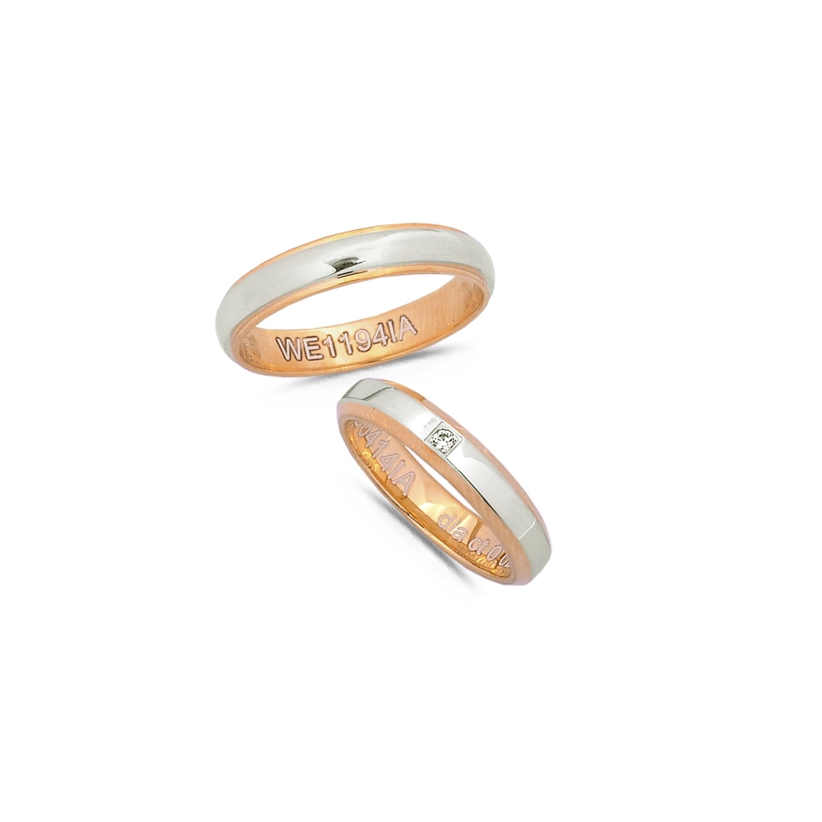 Alliance en argent 925 mill. blanc et rose sertie d'un oxyde.