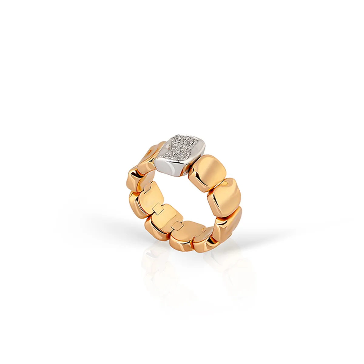 Bague Extensibles en or jaune 750 mill. et blanc 750 mill. pavée de diamants.