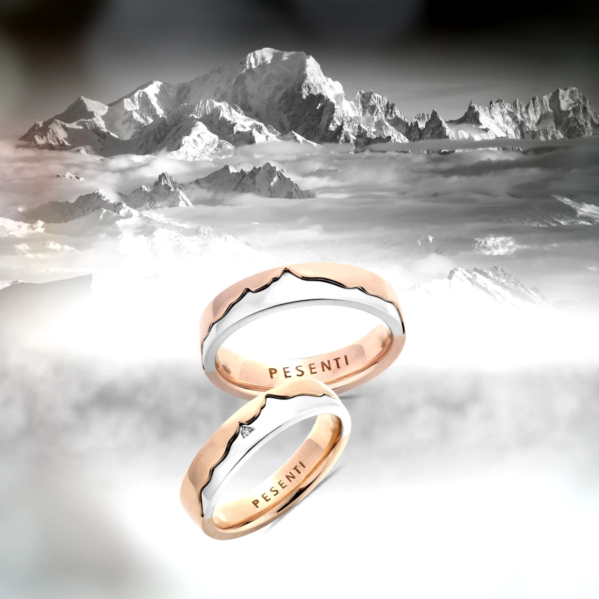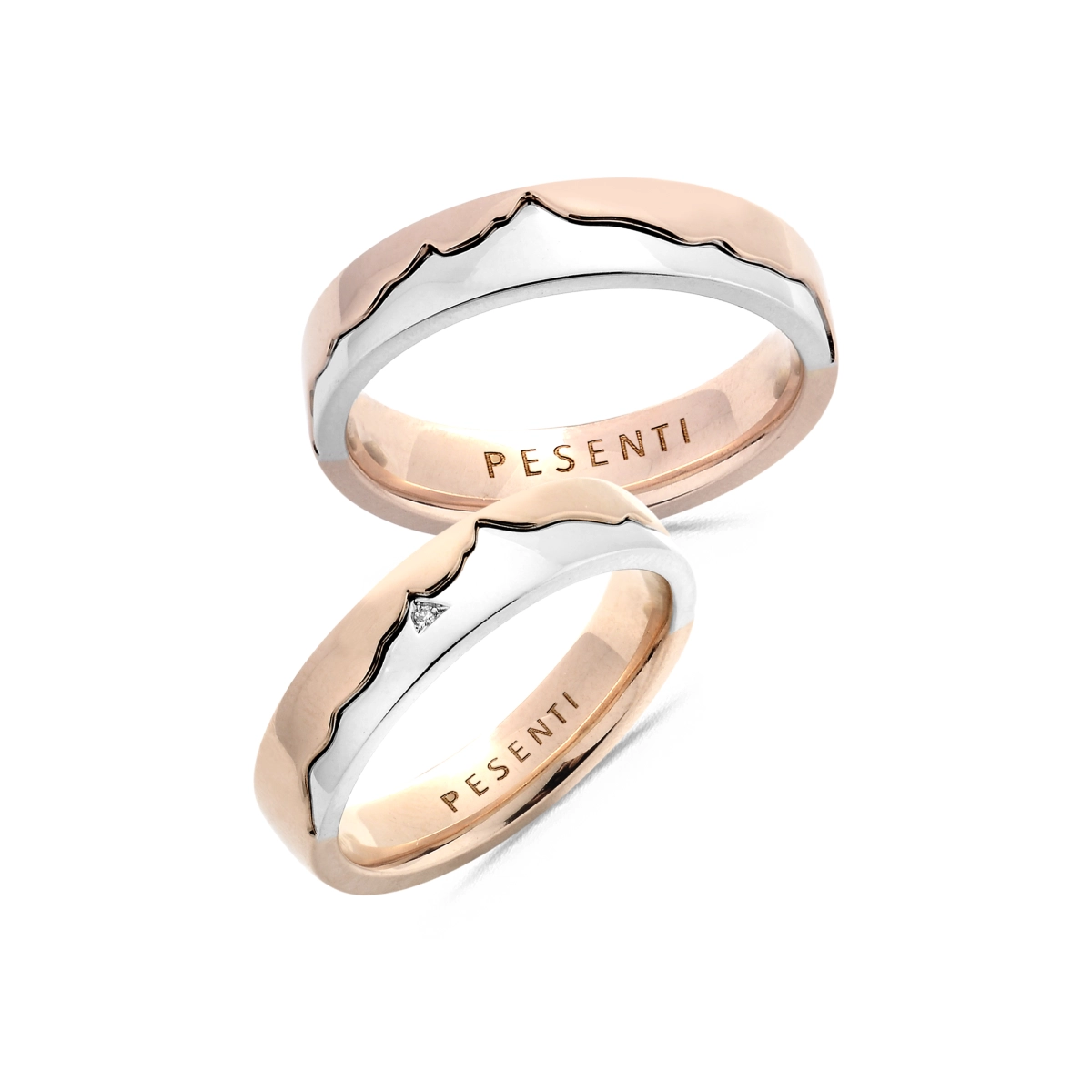 Alliance Pure en or rose et blanc 750 mill. sertie d'un diamant.