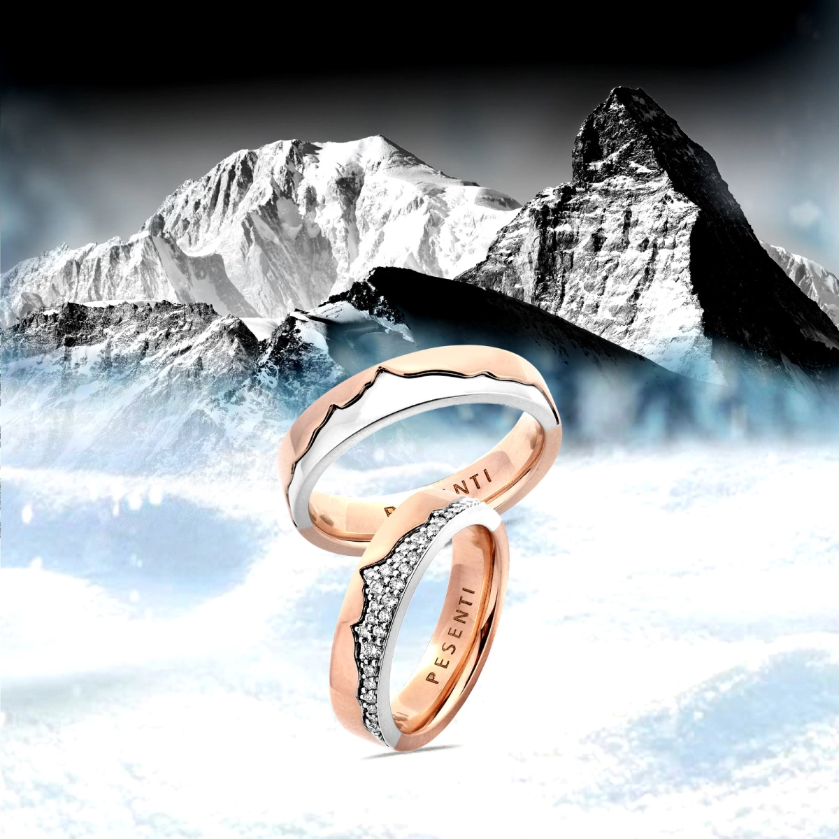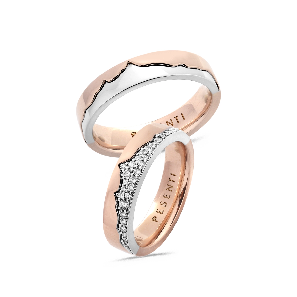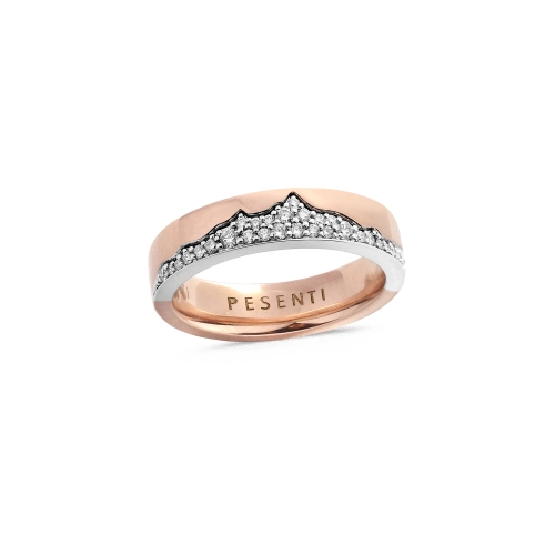 Alliance Pure en or rose et blanc 750 mill. pavée de diamants.