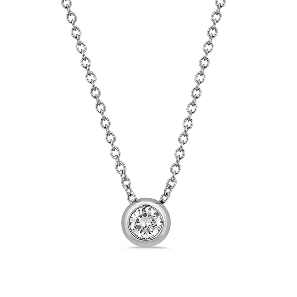 Collier Solitaire Diamant 0.12ct en Or Blanc 750 mill.