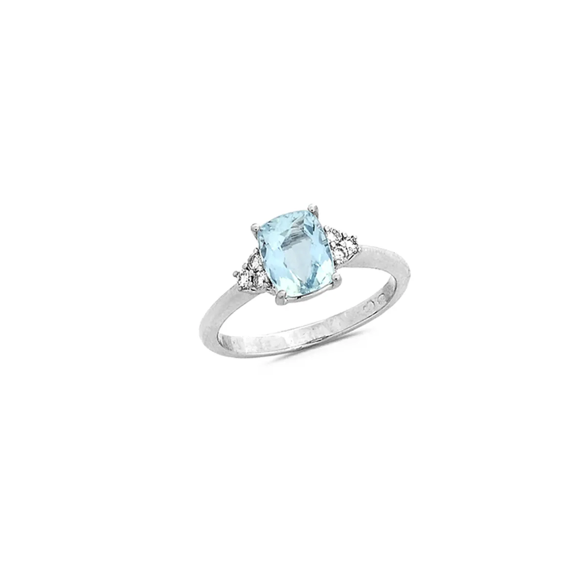 Bague Aigue Marine 1.49ct et Diamants 0.12ct en Or Blanc 750 mill.