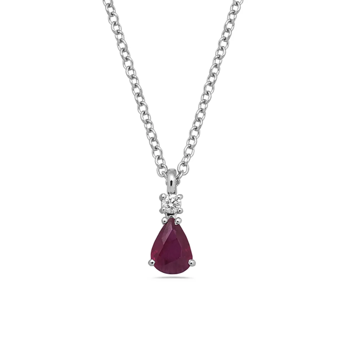 Collier Rubis 0.75ct Forme Poire en Or Blanc 750 mill.