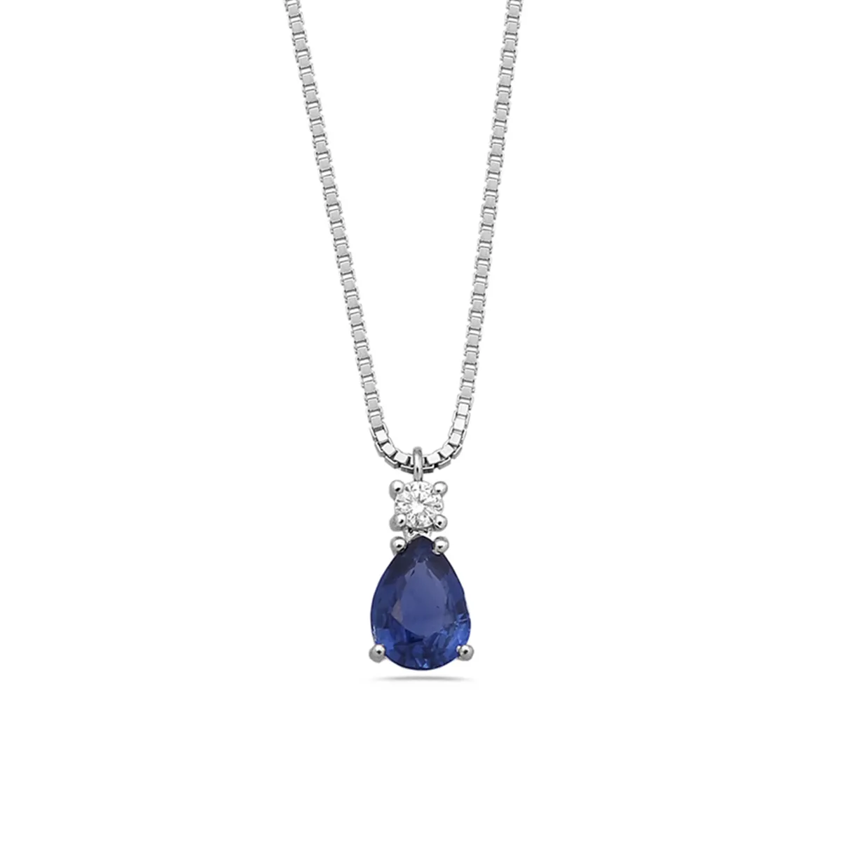 Collier Saphir Poire 0.76ct et Diamant 0.05ct en Or Blanc 750 mill.
