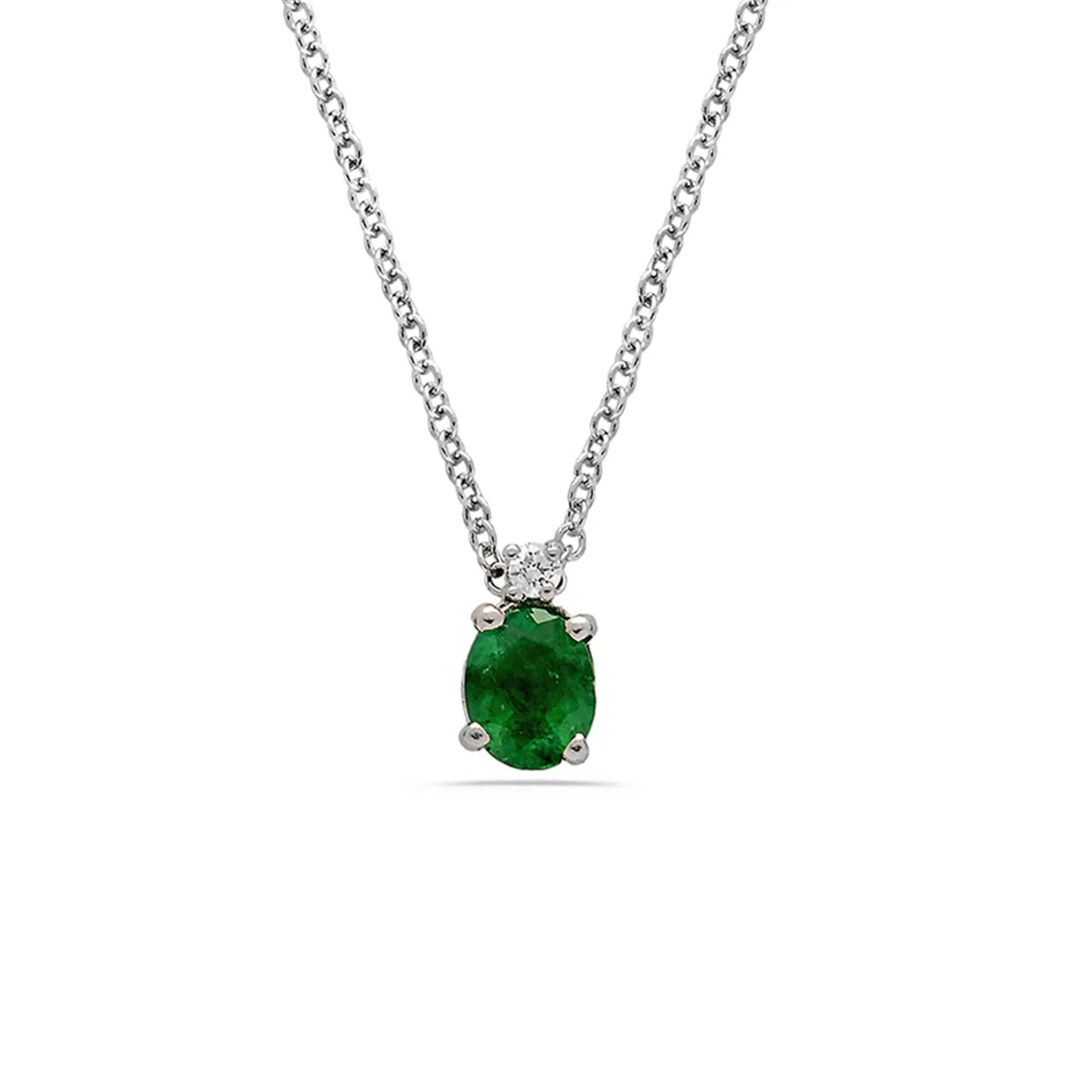 Collier Emeraude 0.28ct et Diamant 0.02ct chaine Flocons d'Amour en Or Blanc 750 mill.