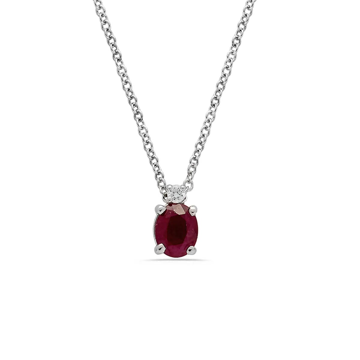 Collier Or Blanc 750 mill. Rubis 0.43ct et Diamant 0.02ct Motif Flocon en la Chaine