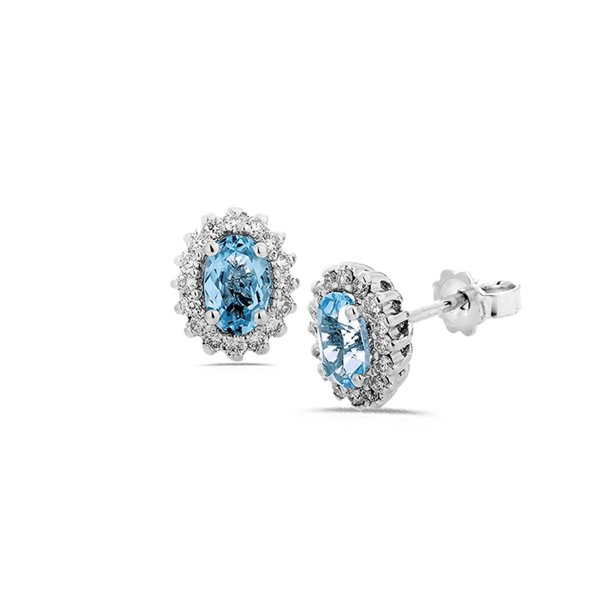 Boucles d'Oreilles Aigue-Marines 0.86ct entourage Diamants 0.86ct en Or Blanc 750 mill.