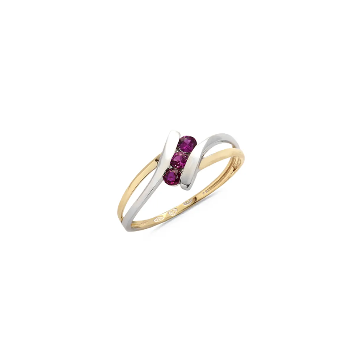 Bague Trilogie Rubis 0.20ct en Or Bicolore 750 mill.