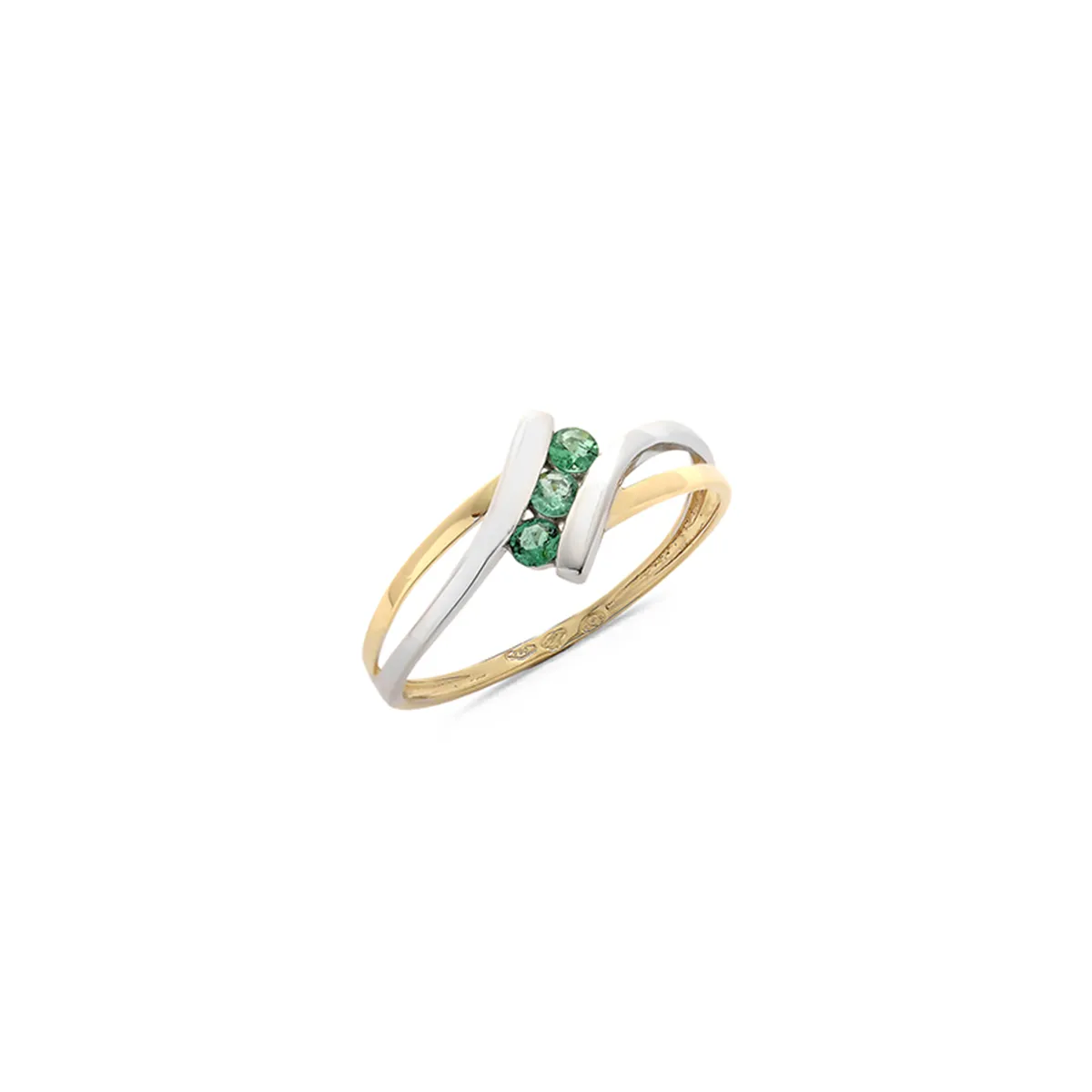 Bague Trilogie Emeraudes 0.13ct en Or Bicolore massif 750 mill.
