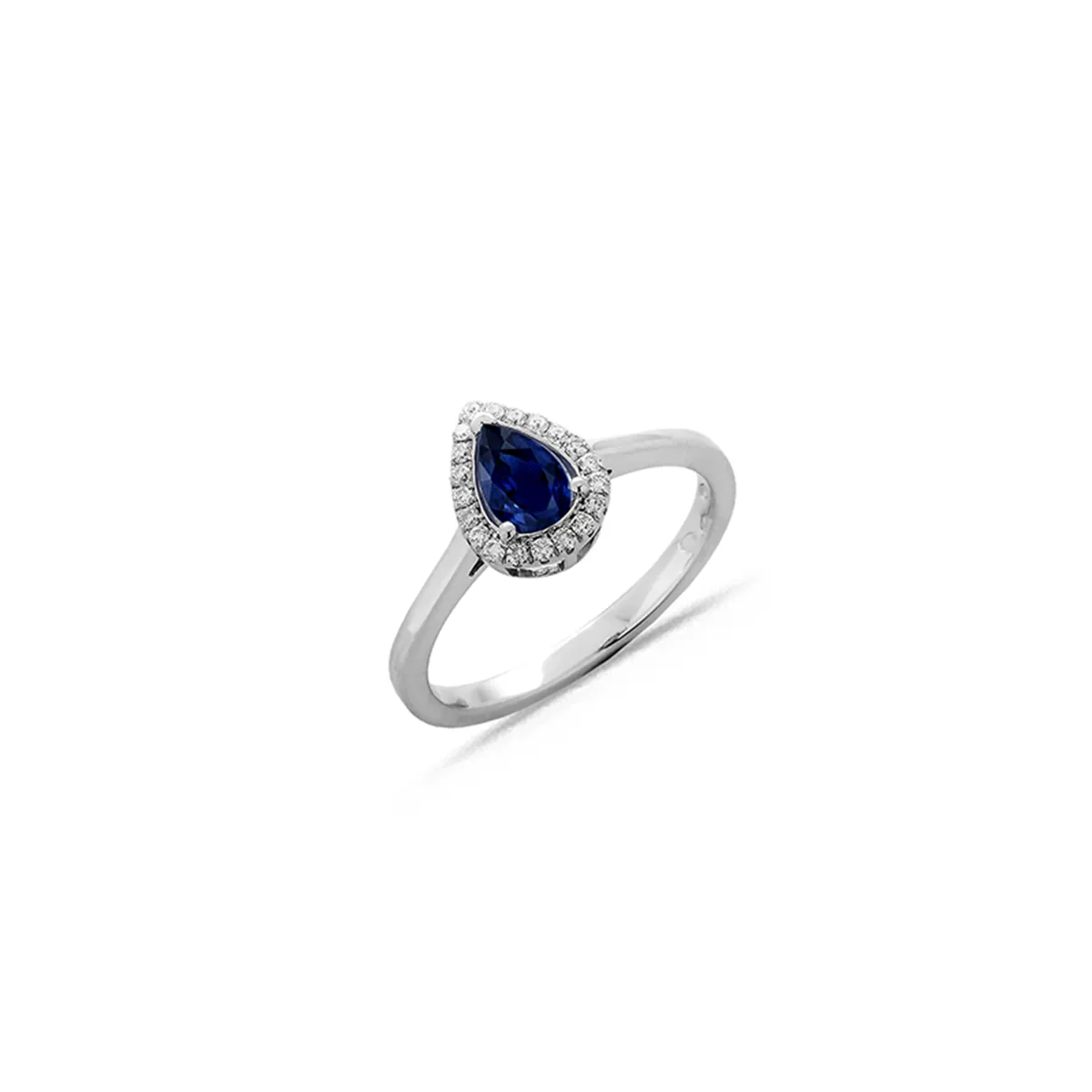Bague Saphir Bleu 0.47ct et Diamants 0.01ct en Or Blanc 750 mill.