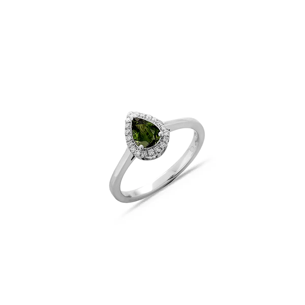Bague Saphir Vert 0.48ct et Diamants 0.01ct en Or Blanc 750 mill.