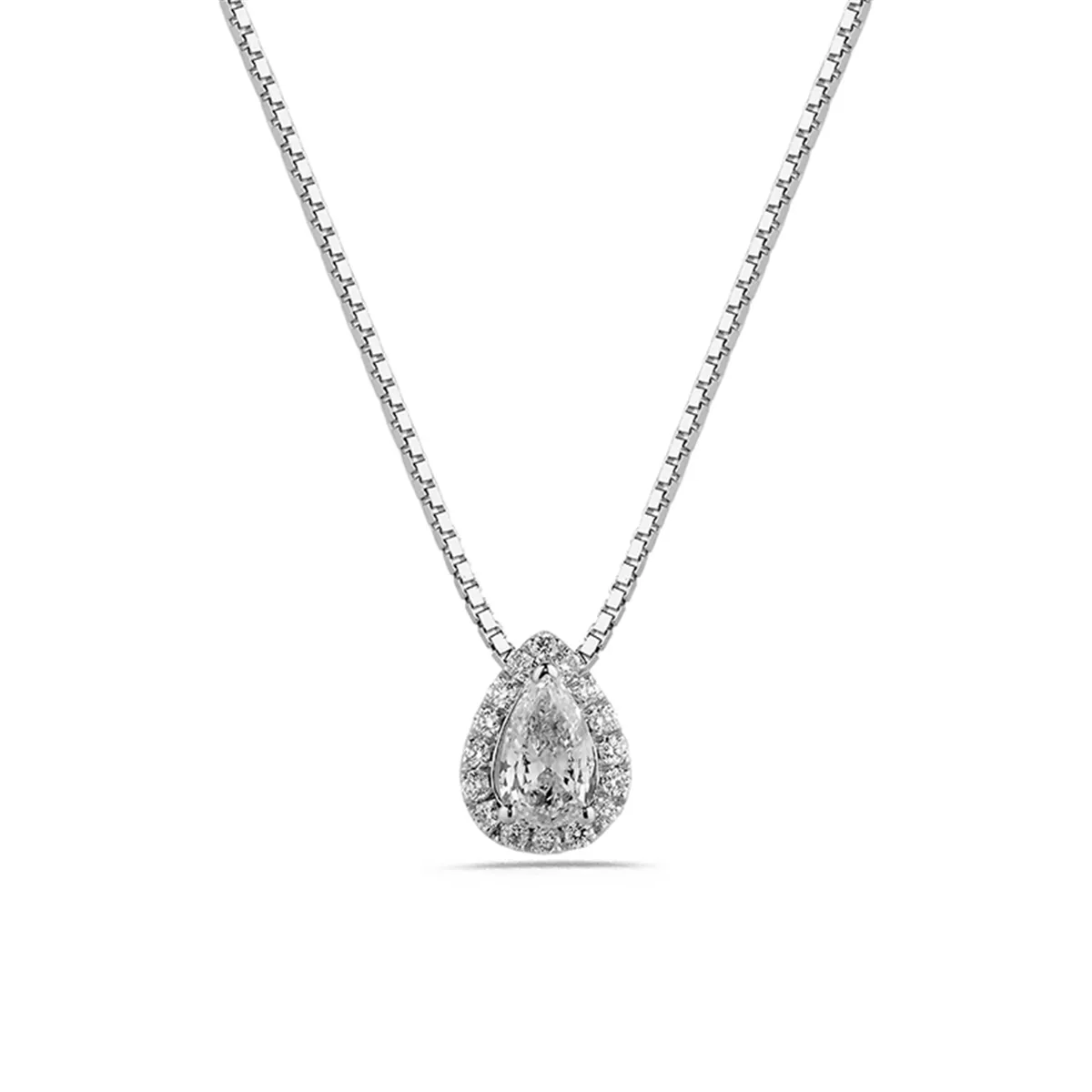 Collier Diamant Poire entourage Diamants en Or Blanc