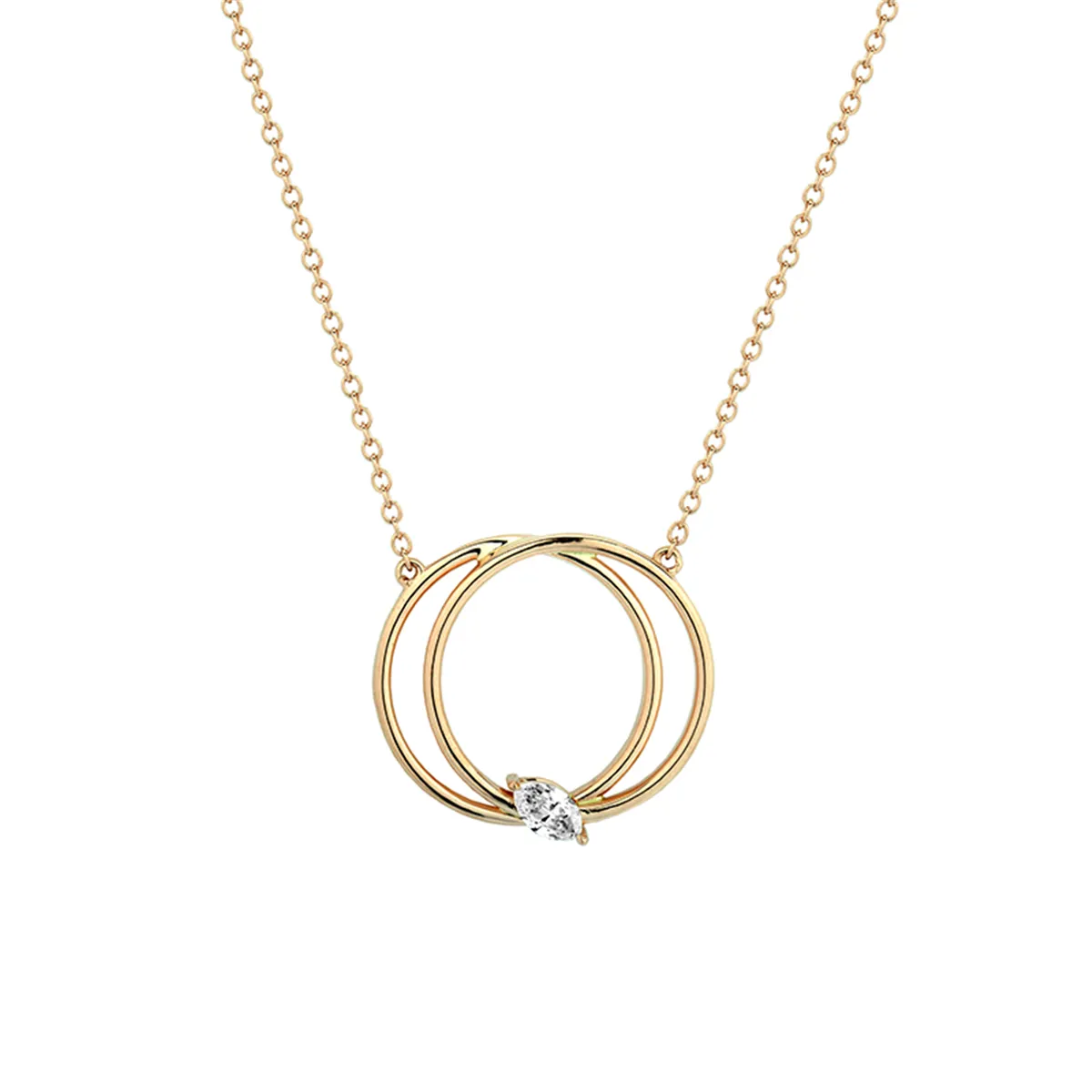 Collier Double Anneaux avec Diamants Navette Or Rose