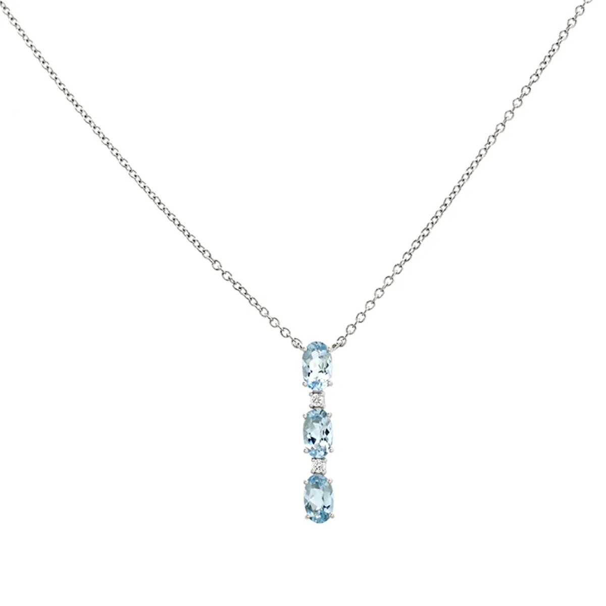Collier Trilogie Aigue Marine Diamants GSI et Or Blanc