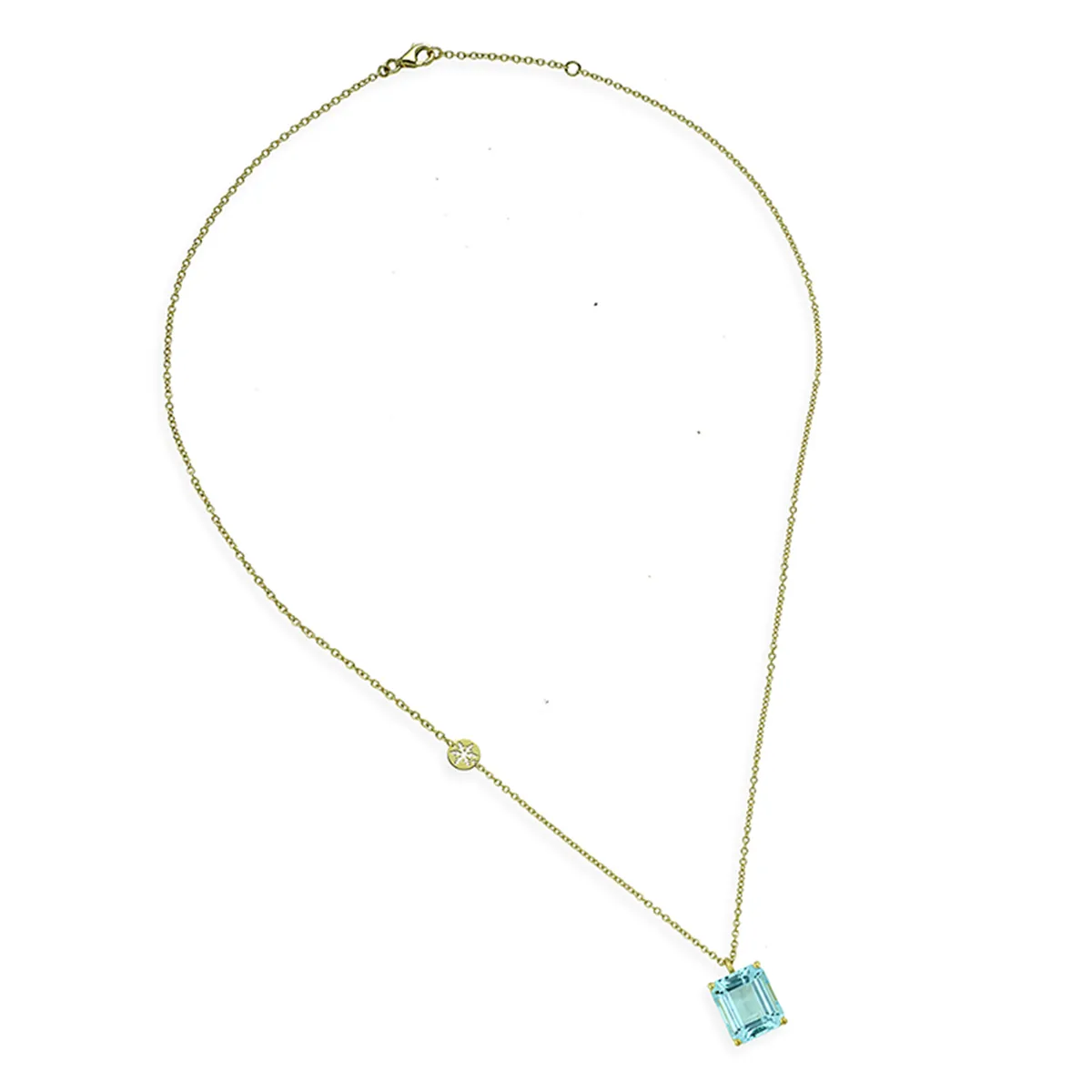 Collier Aigue Marine Octogonale en Or Jaune