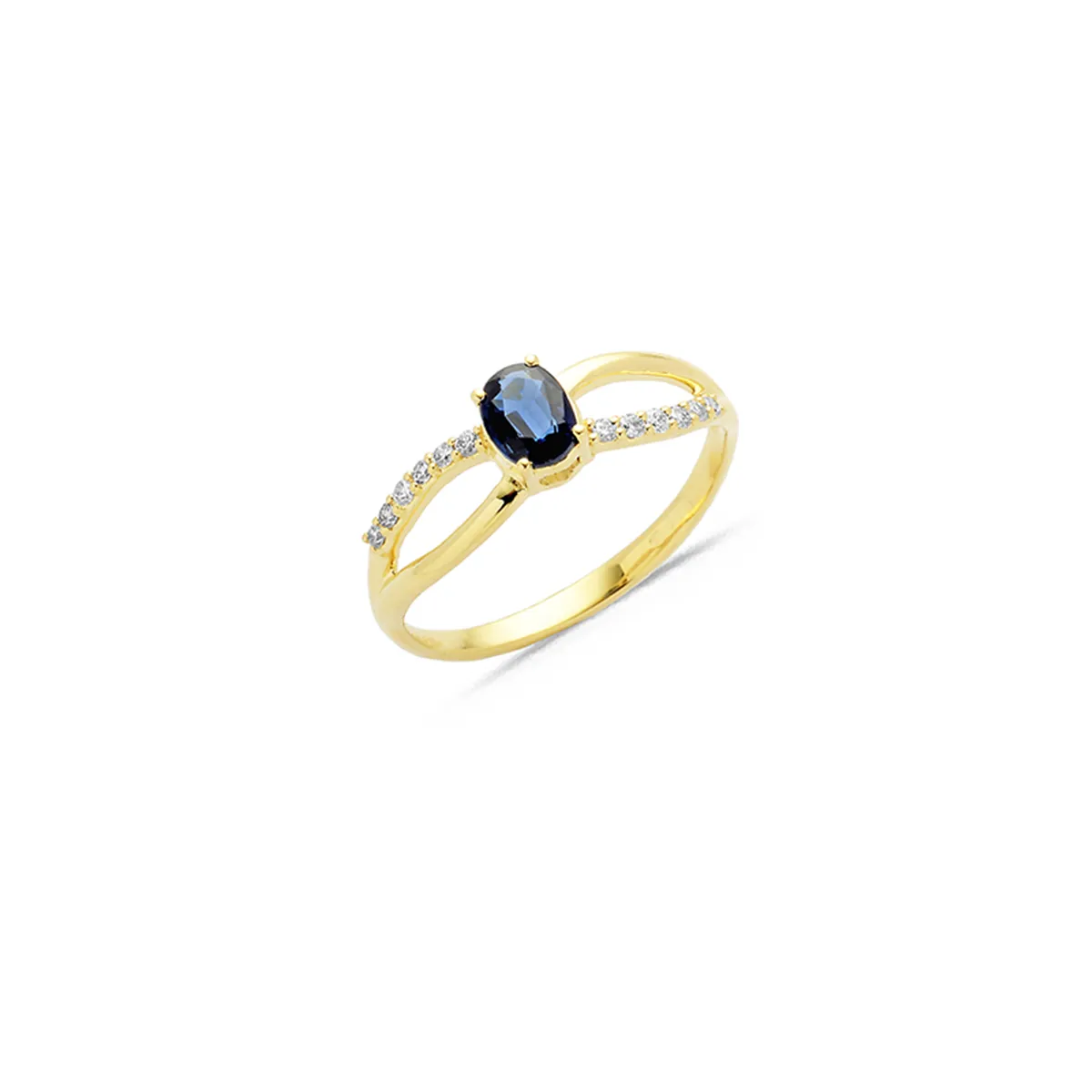 Bague Saphir 0.49ct et Diamants 0.10ct en Or Jaune 750 mill.