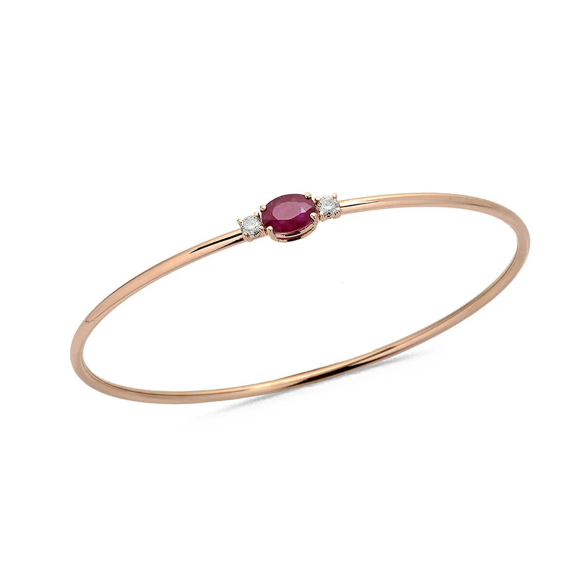 Bracelet Jonc Rubis Oval 1.05ct et Diamants 0.12ct en Or Rose 750 mill.