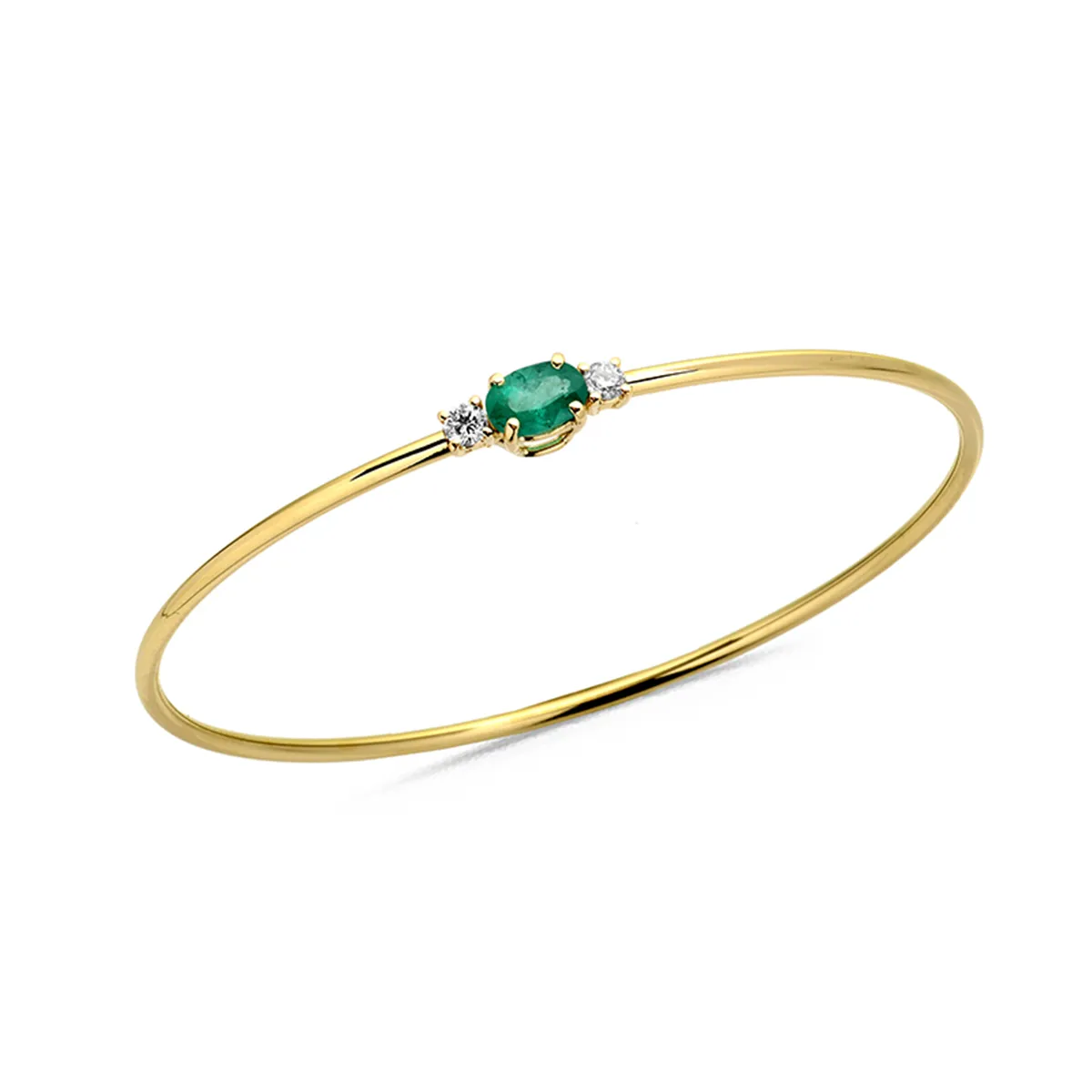 Bracelet Jonc Emeraude Oval et Diamants en Or