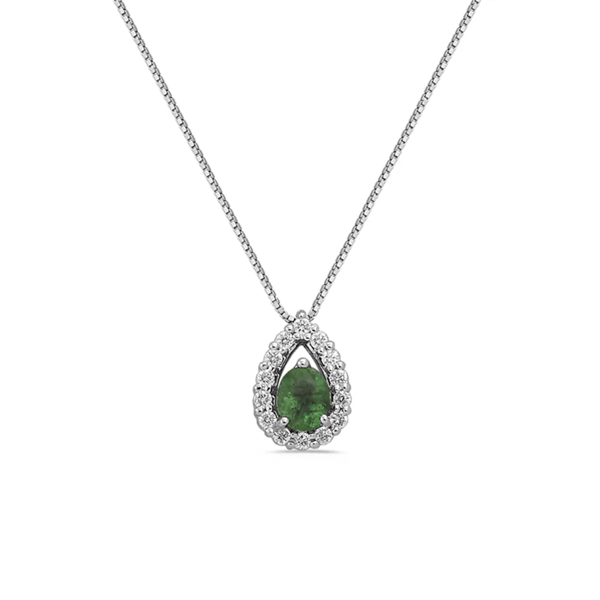 Collier Emeraude 0.13ct entourage Diamants 0.14ct en Or Blanc 750 mill.
