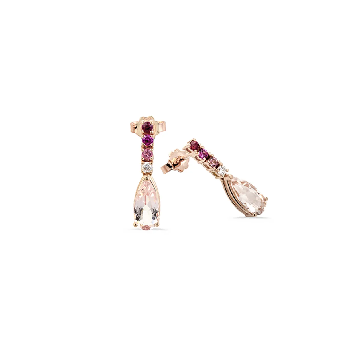 Boucles d'Oreilles Morganite, Tourmaline Rose, Rubiset Diamants en Or Rose