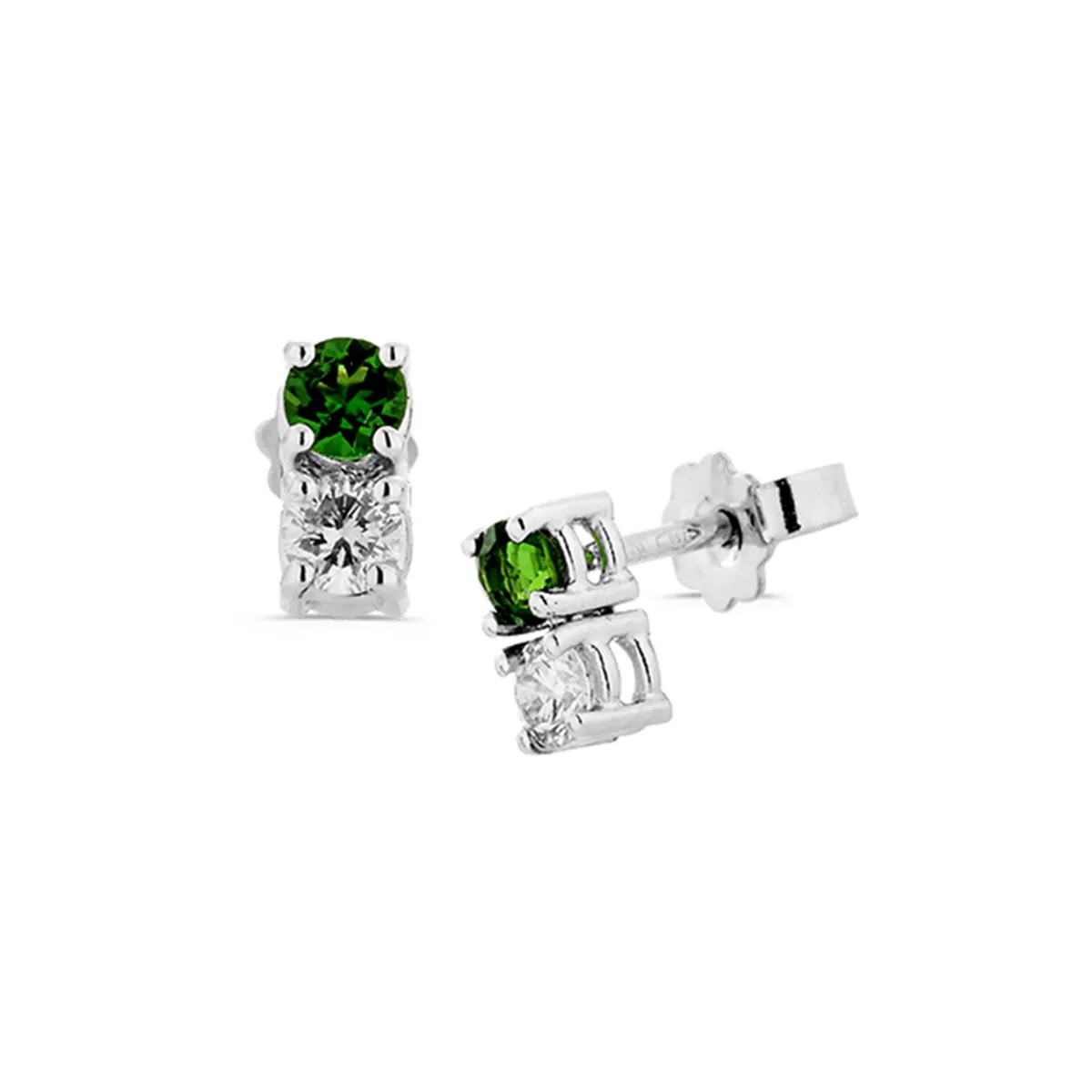 Boucles d'Oreilles Cronotourmaline 0.11ct et Diamant 0.22ct en Or Blanc 750 mill. .