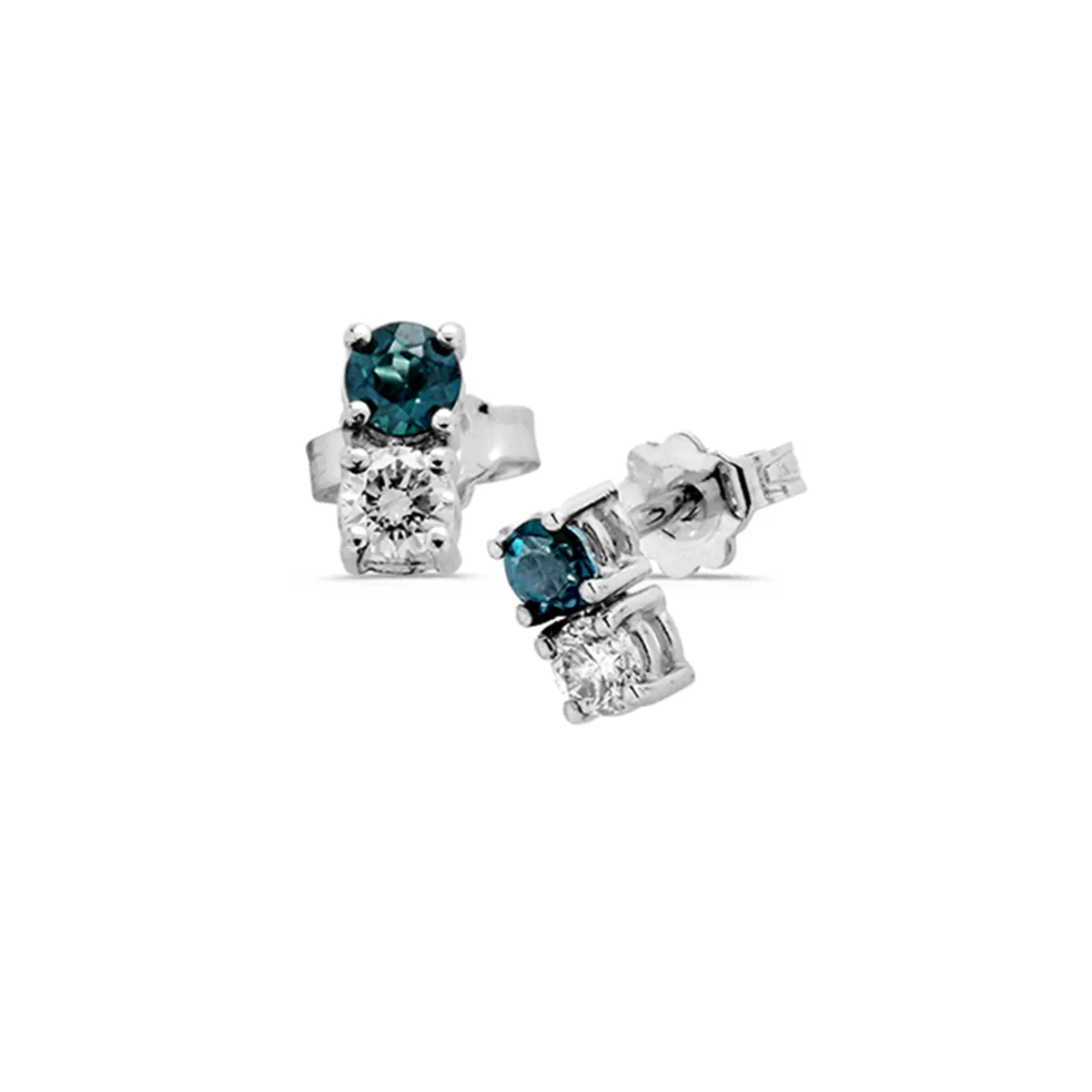 Boucles d'Oreilles Topaze Paraiba et Diamants 0.22ct en Or Blanc 750 mill. .