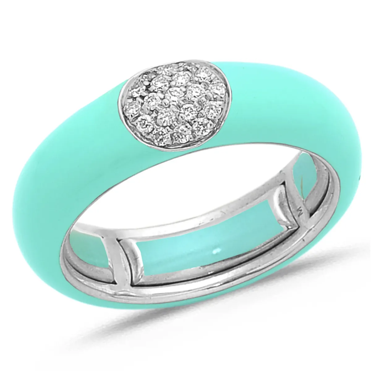 Bague Émail en or blanc 750 mill. pavée de diamants.