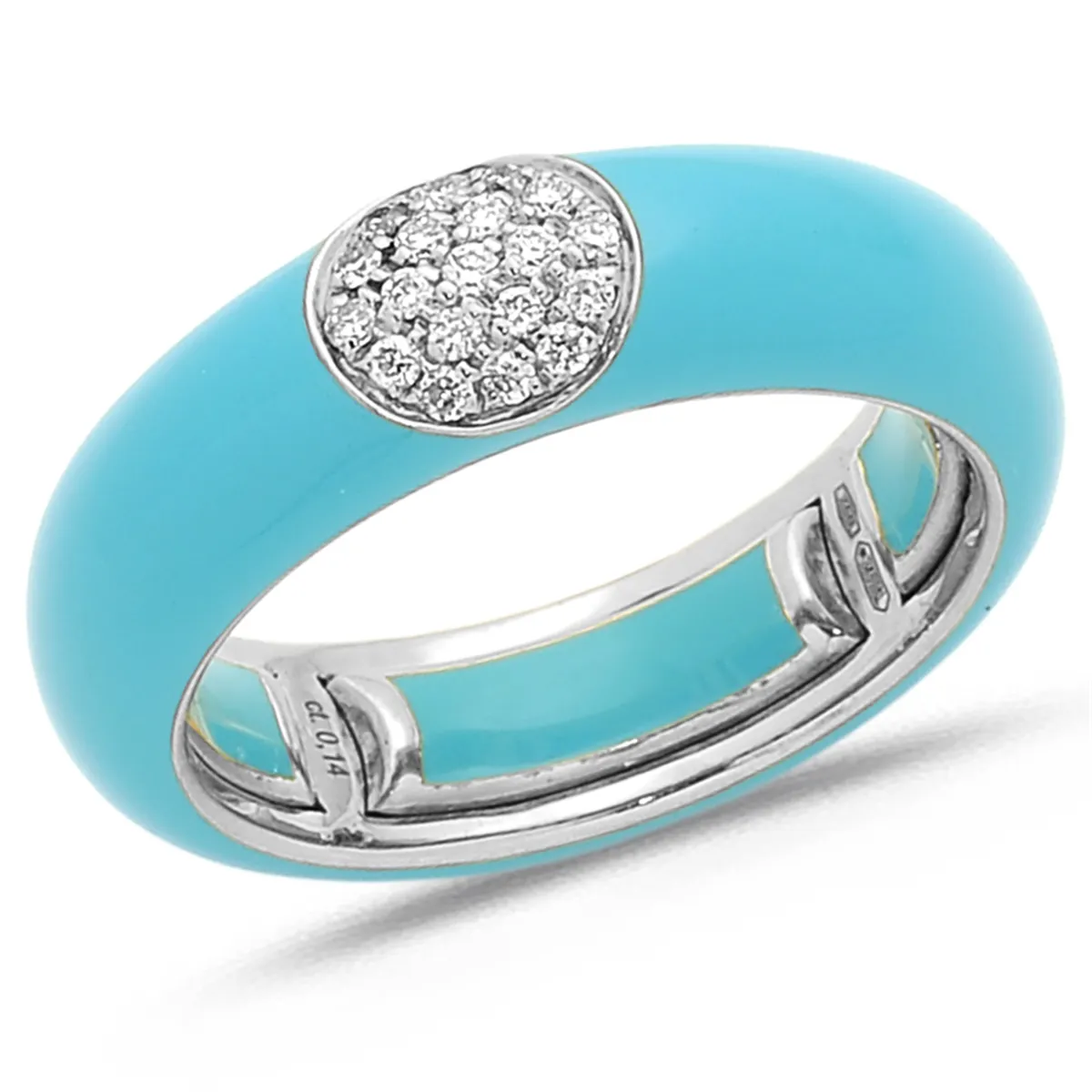 Bague Émail Turquoise sertie de Diamants 0.14ct. en Or 750 mill. Blanc