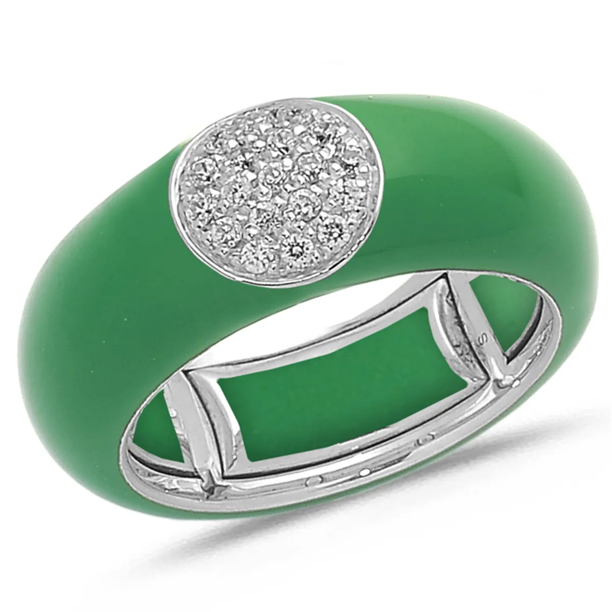 Bague Émail Vert sertie de Diamants 0.22ct. en Or 750 mill. Blanc