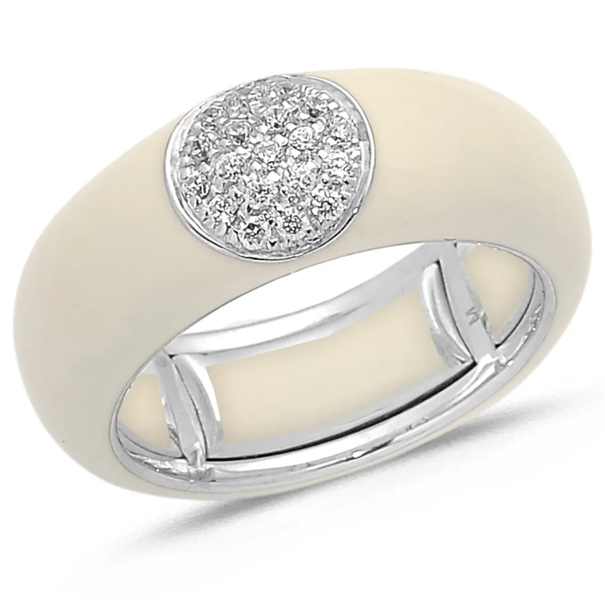 Bague Émail Ivoire sertie de Diamants 0.22ct. en Or 750 mill. Blanc