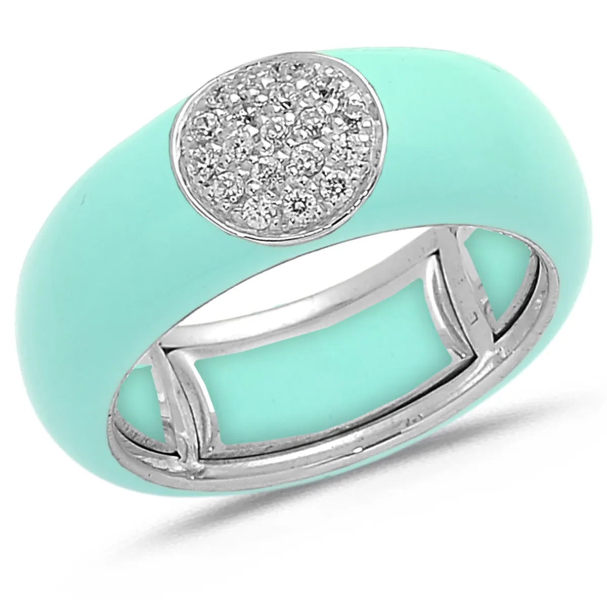 Bague Émail Bleu Clair sertie de Diamants 0.22ct. en Or 750 mill. Blanc