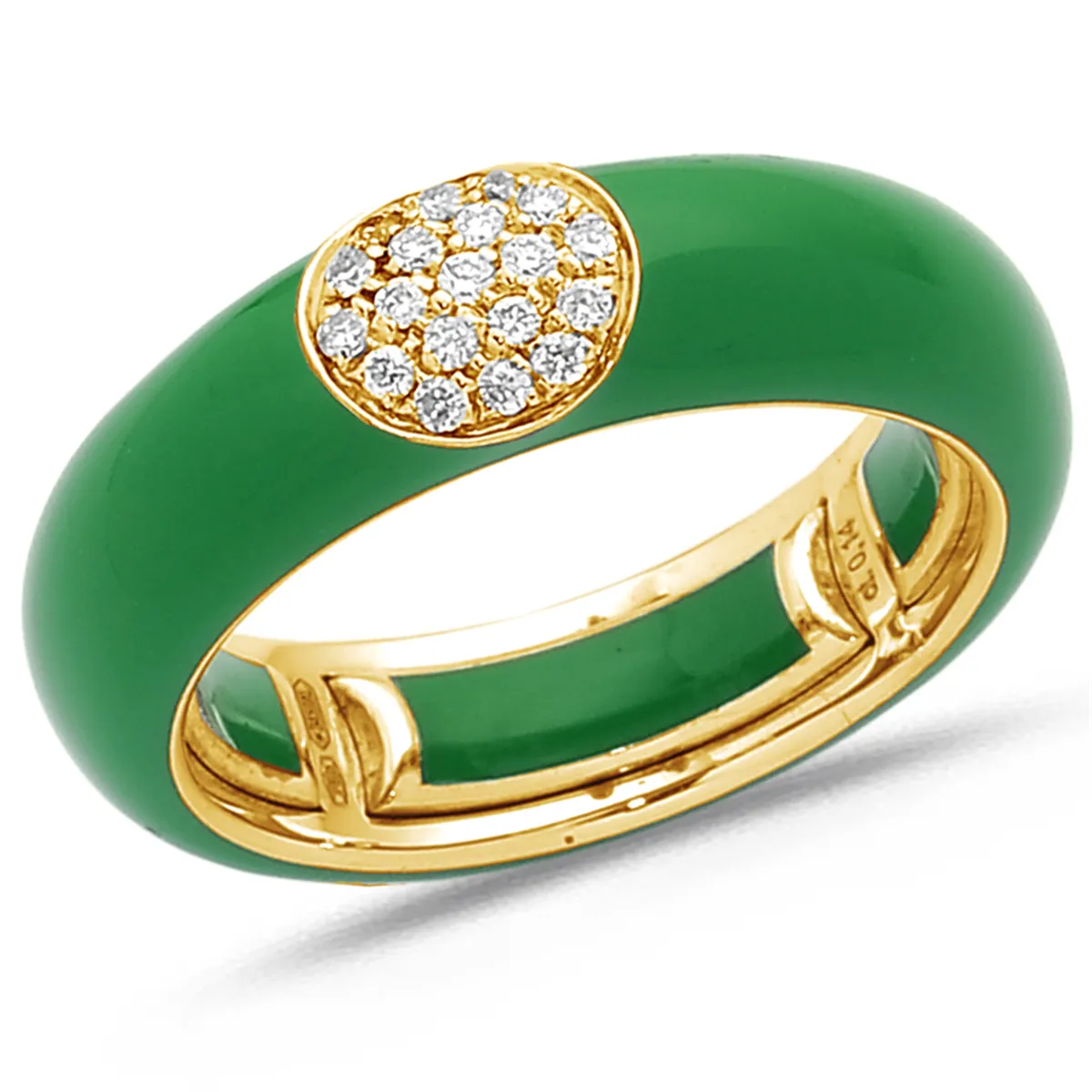 Bague Émail vert en Or Jaune 750 mill. sertie de Diamants 0.14ct.