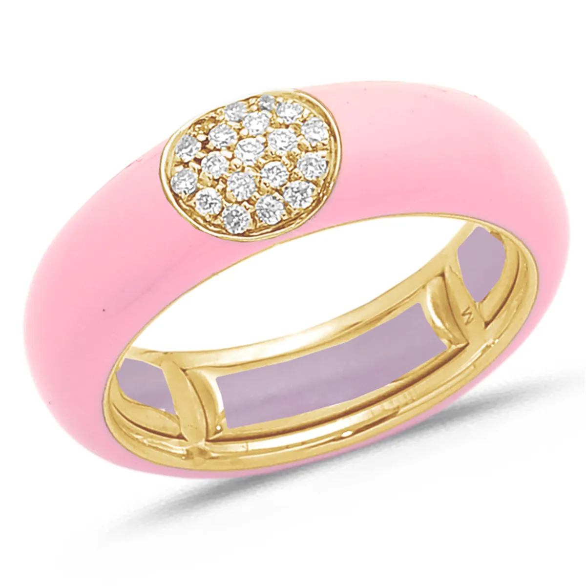 Bague Émail rose en Or Jaune 750 mill. sertie de Diamants 0.14ct.