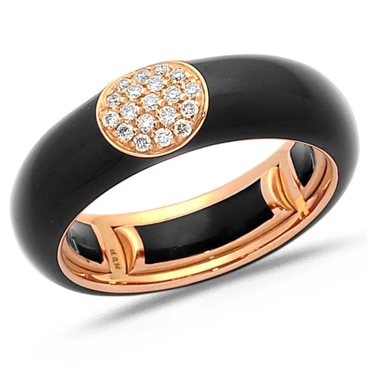 Bague Émail noir sertie de Diamants 0.14ct. en Or Rose 750 mill.
