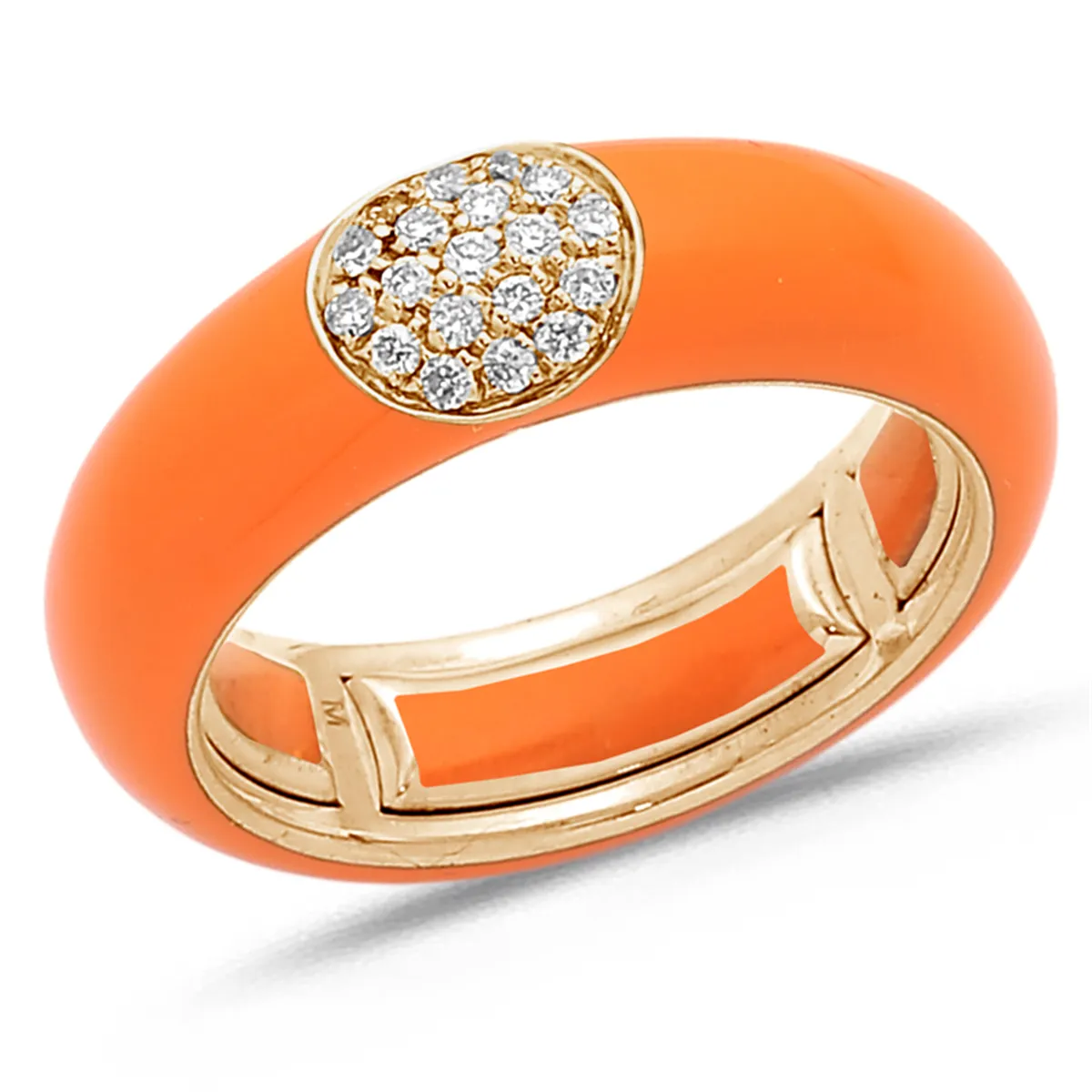 Bague Émail orange sertie de Diamants 0.14ct. en Or Rose 750 mill.