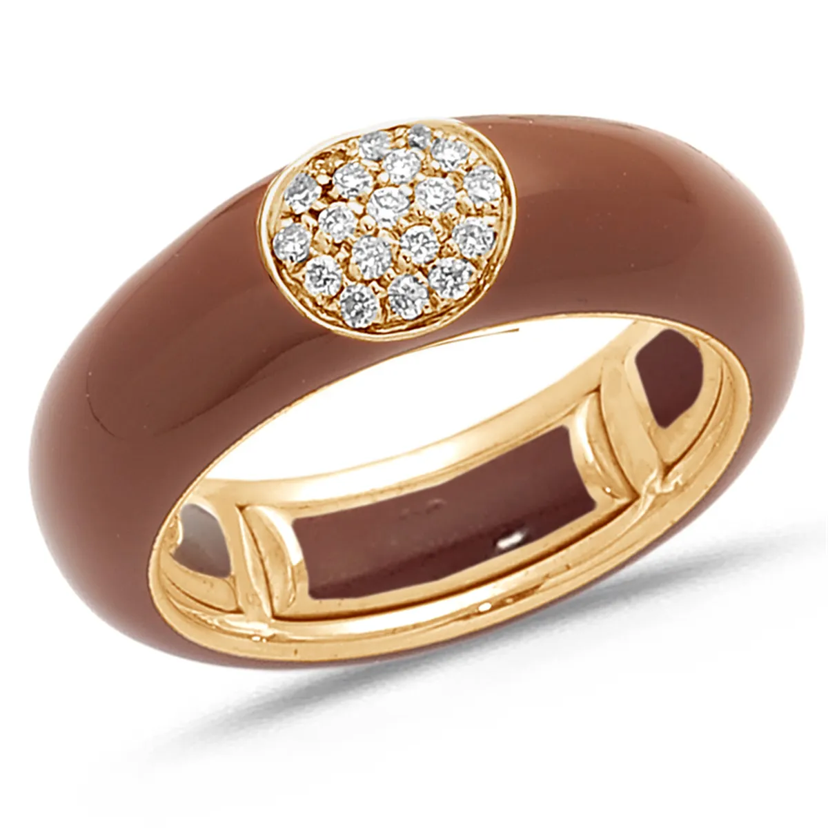 Bague Émail marron sertie de Diamants 0.14ct. en Or Rose 750 mill.