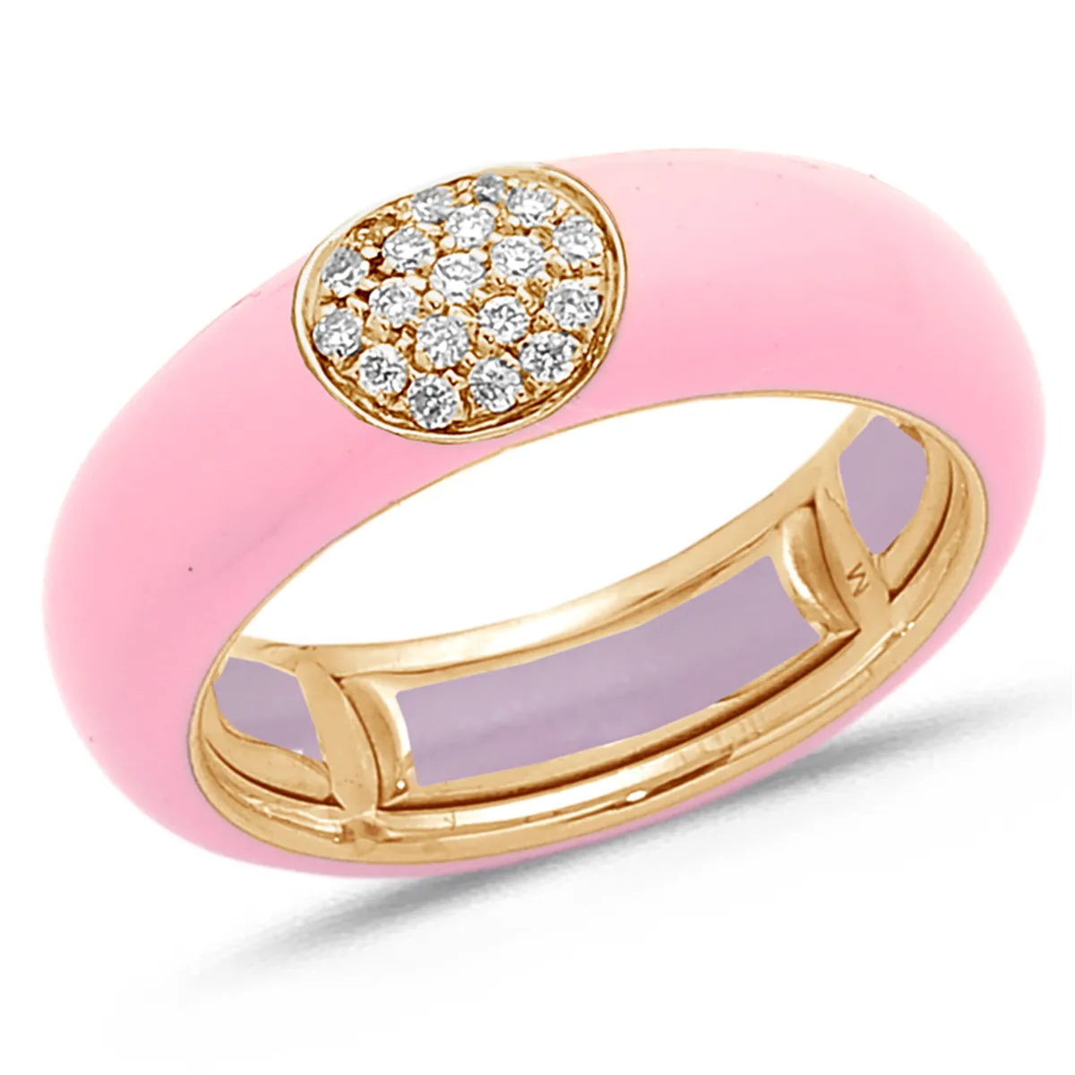 Bague Émail rose sertie de Diamants 0.14ct. en Or Rose 750 mill.