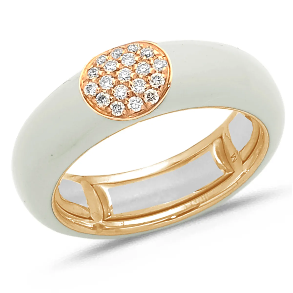 Bague Émail ivoire sertie de Diamants 0.14ct. en Or Rose 750 mill.