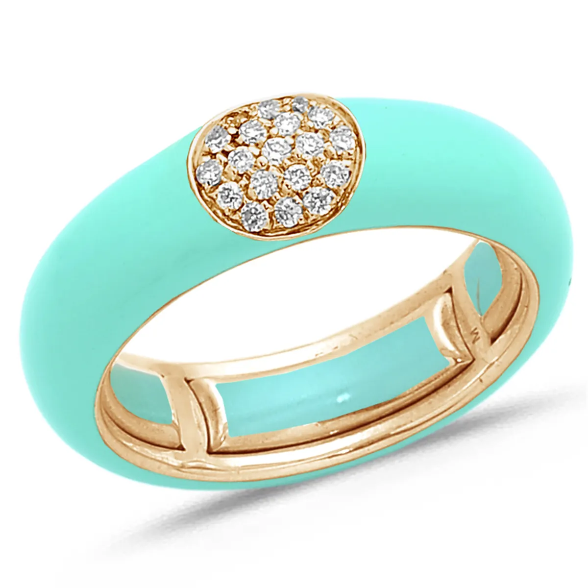 Bague Émail bleu clair sertie de Diamants 0.14ct. en Or Rose 750 mill.