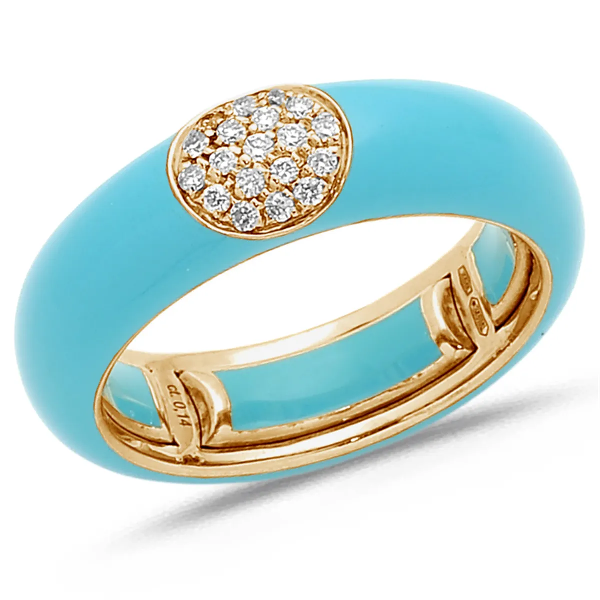 Bague Émail turquoise sertie de Diamants 0.14ct. en Or Rose 750 mill.