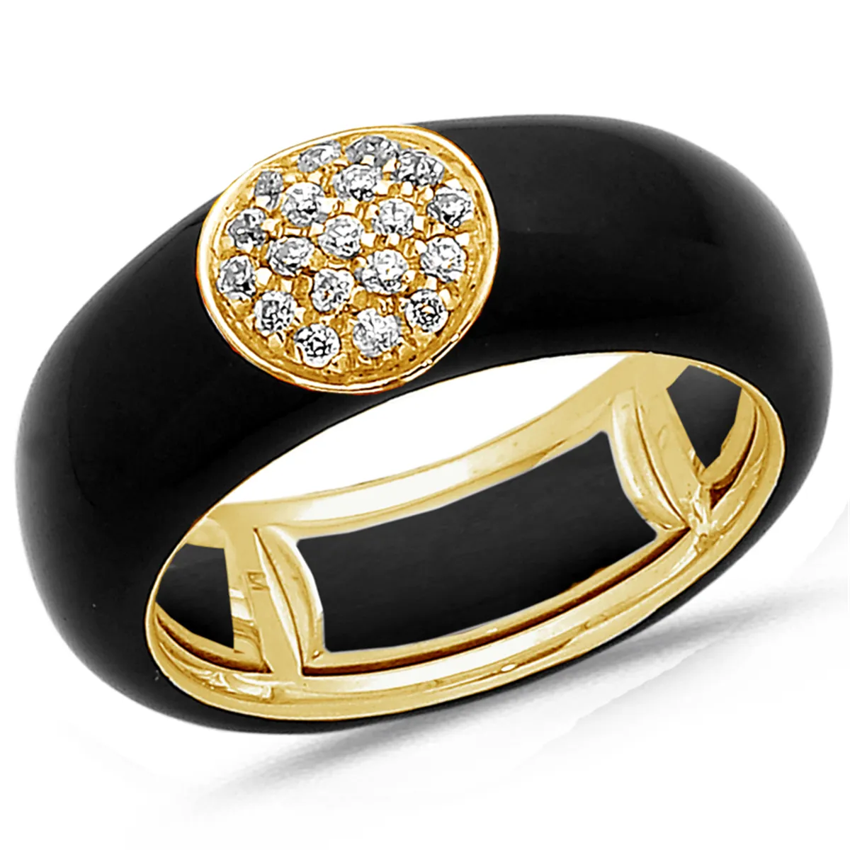 Bague Émail Noir sertie de Diamants 0.22ct. en Or 750 mill. Jaune