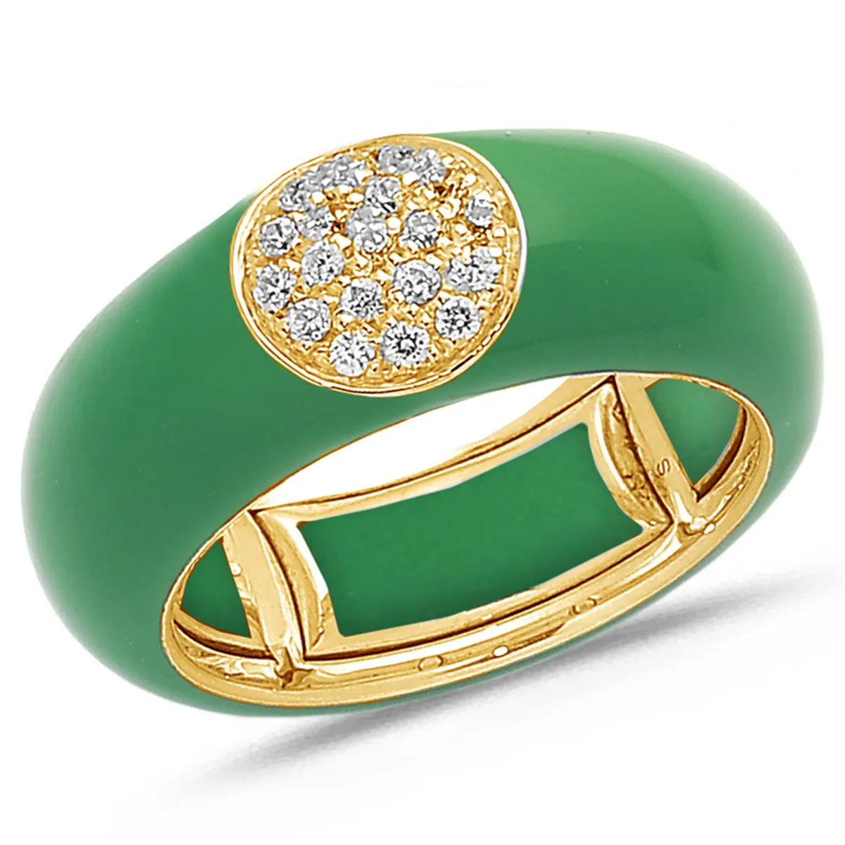 Bague Émail Vert sertie de Diamants 0.22ct. en Or 750 mill. Jaune