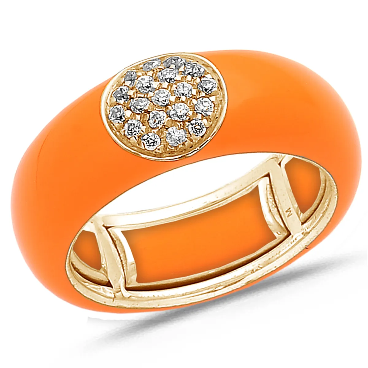 Bague Émail orange sertie de Diamants 0.22ct. en Or 750 mill. Rose