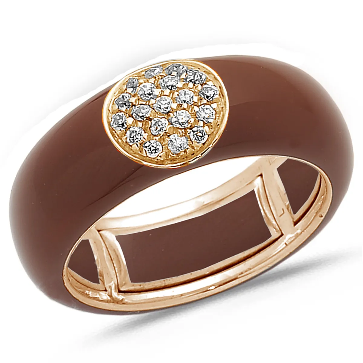 Bague Émail marron sertie de Diamants 0.22ct. en Or 750 mill. Rose