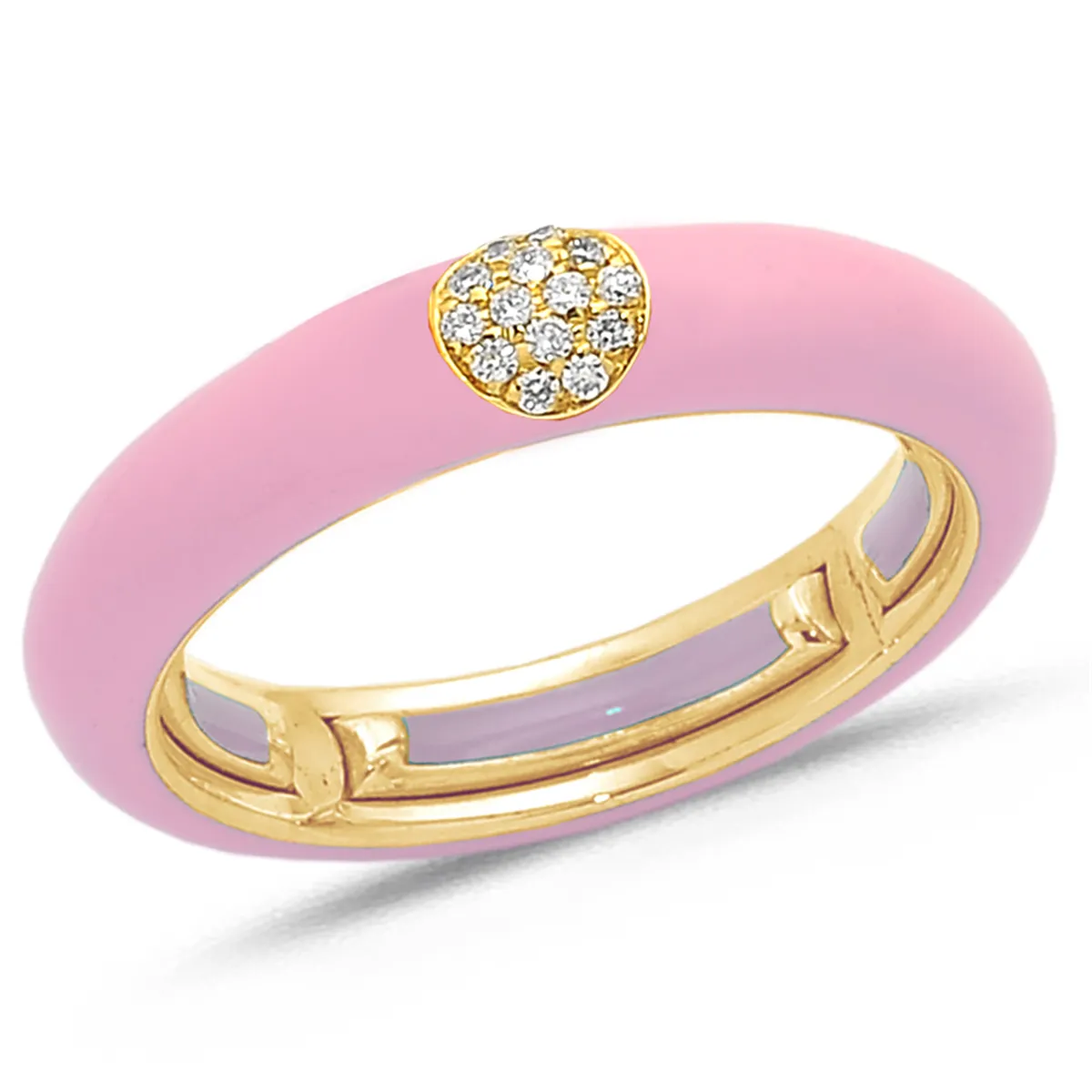 Bague Émail Rose sertie de Diamants 0.07ct. en Or 750 mill. Jaune