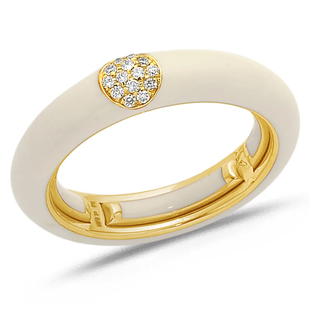 Bague Émail Ivoire sertie de Diamants 0.07ct. en Or 750 mill. Jaune
